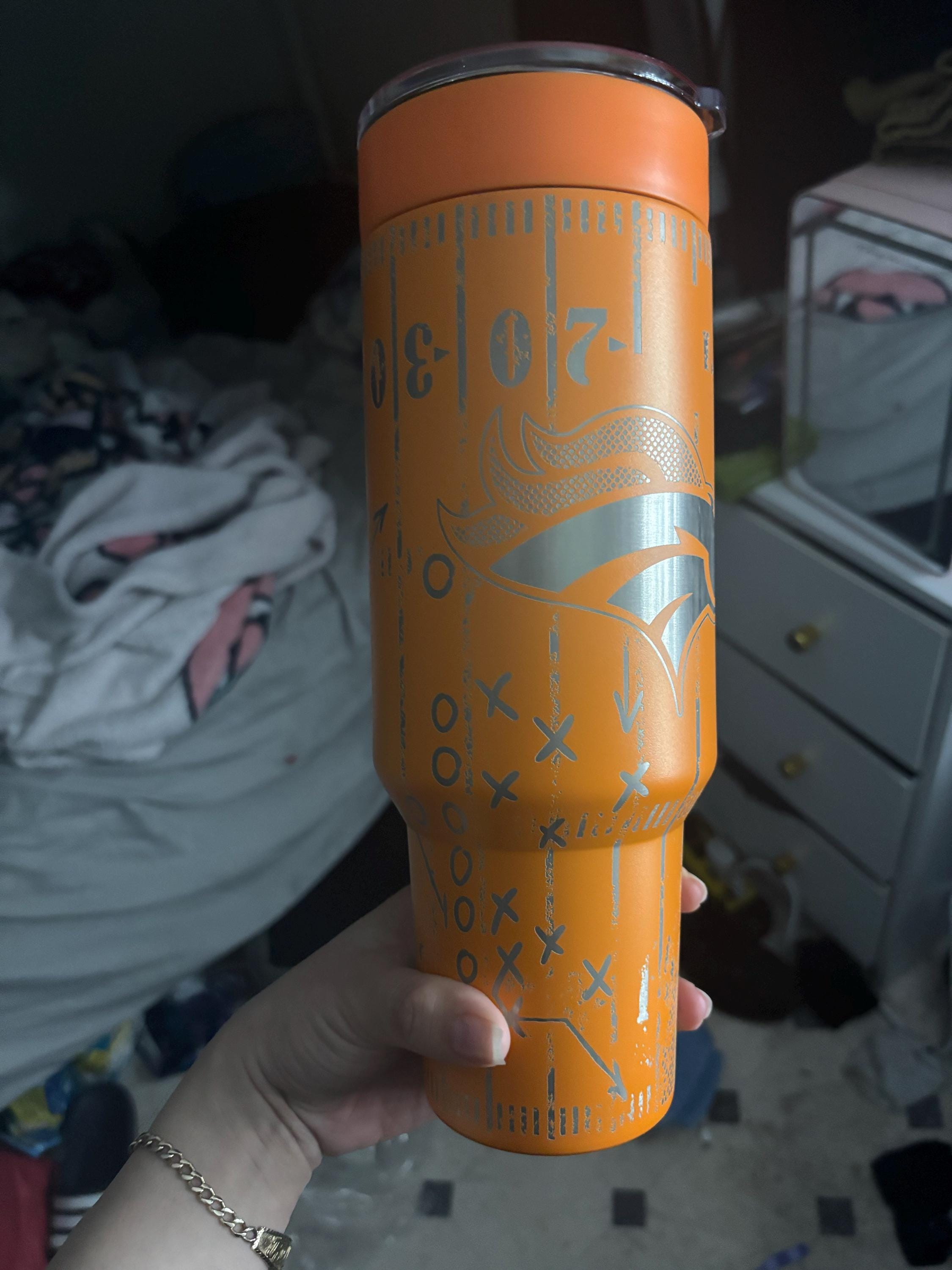 Show your Denver pride with this bold 40oz laser-engraved Broncos tumbler β the ultimate cup for die-hard fans!