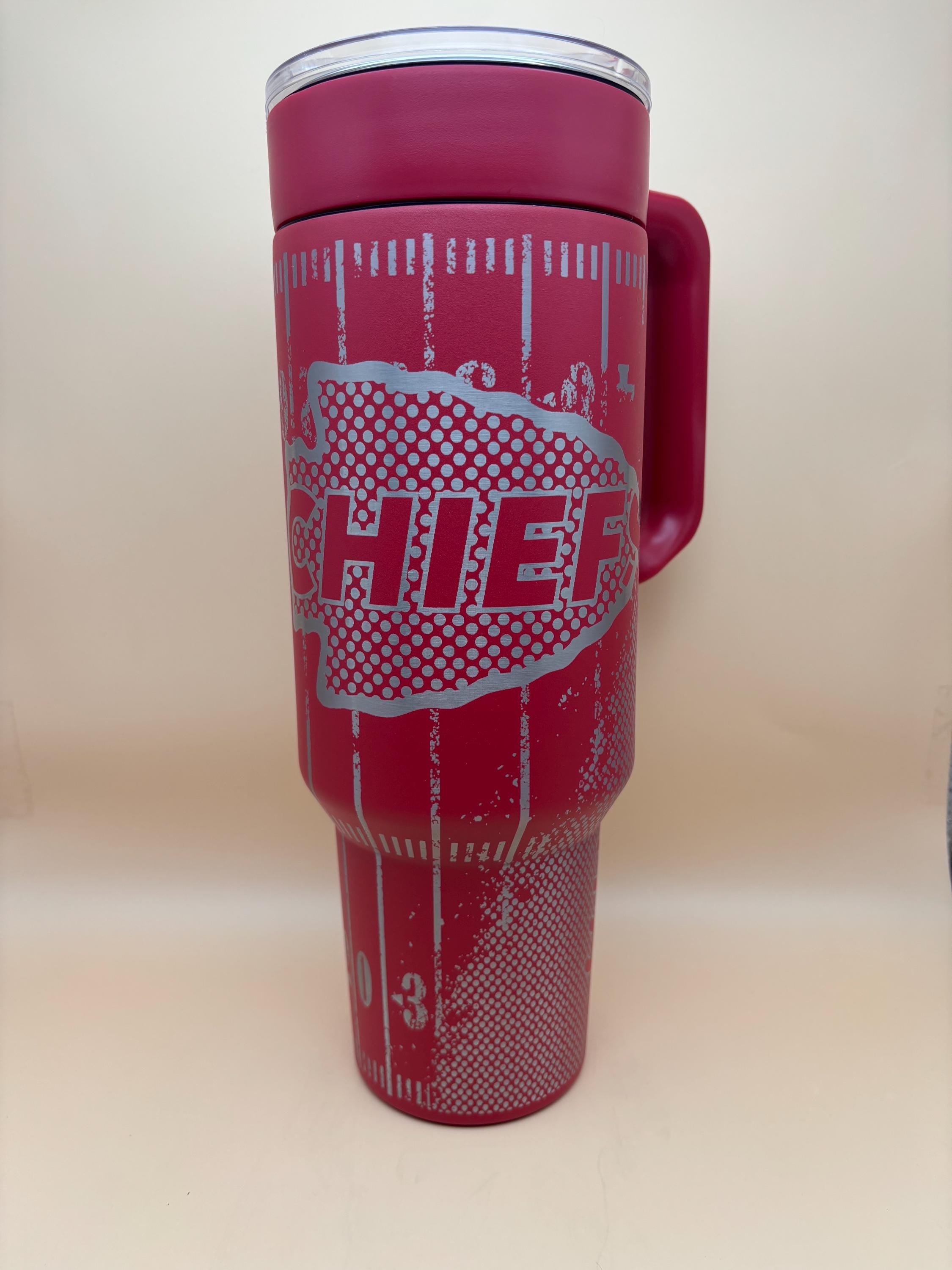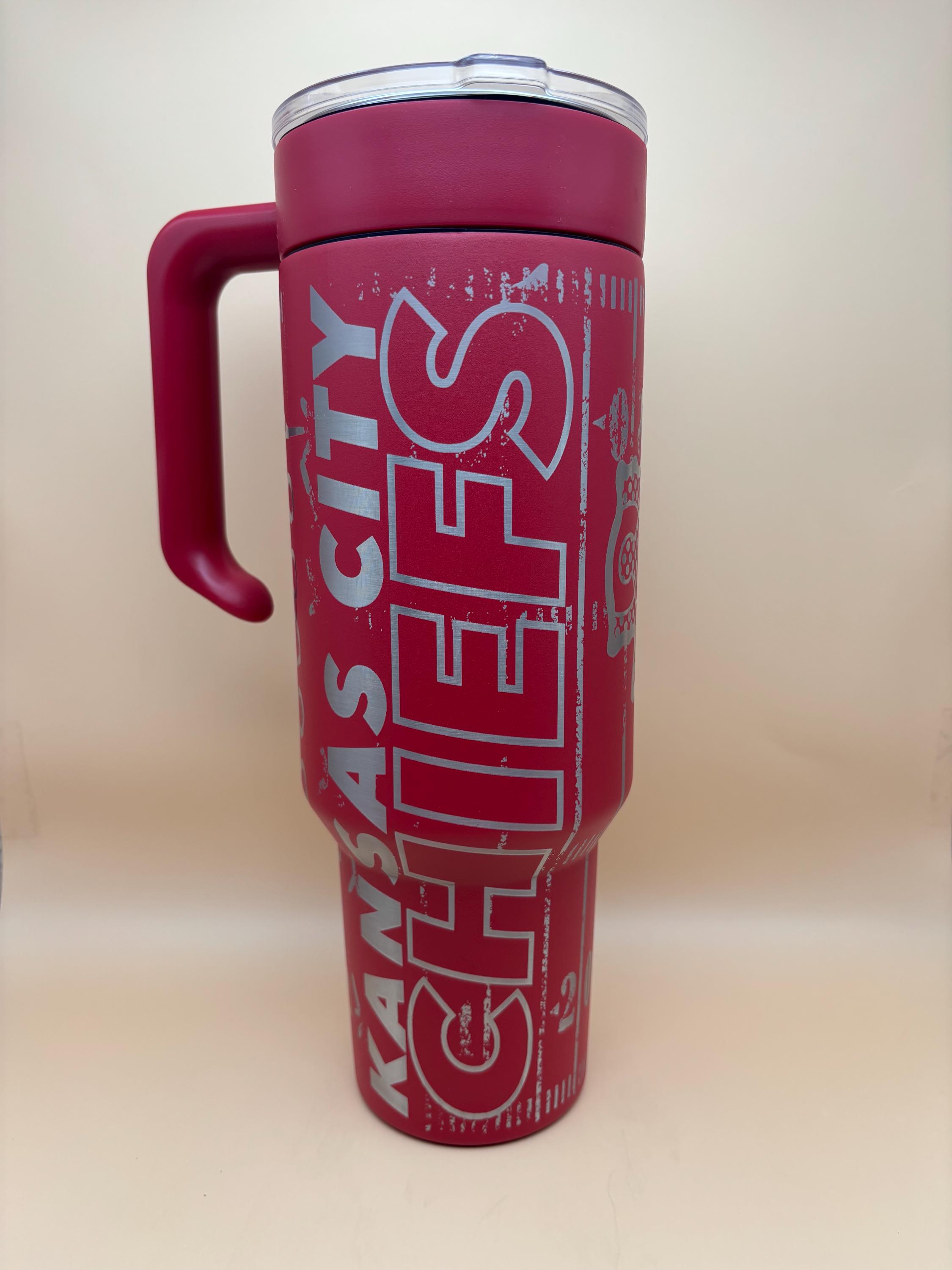 Rep your team loud and proud with our 40oz laser-engraved Kansas City Chiefs tumbler! Designed for true fans who bleed red and gold.