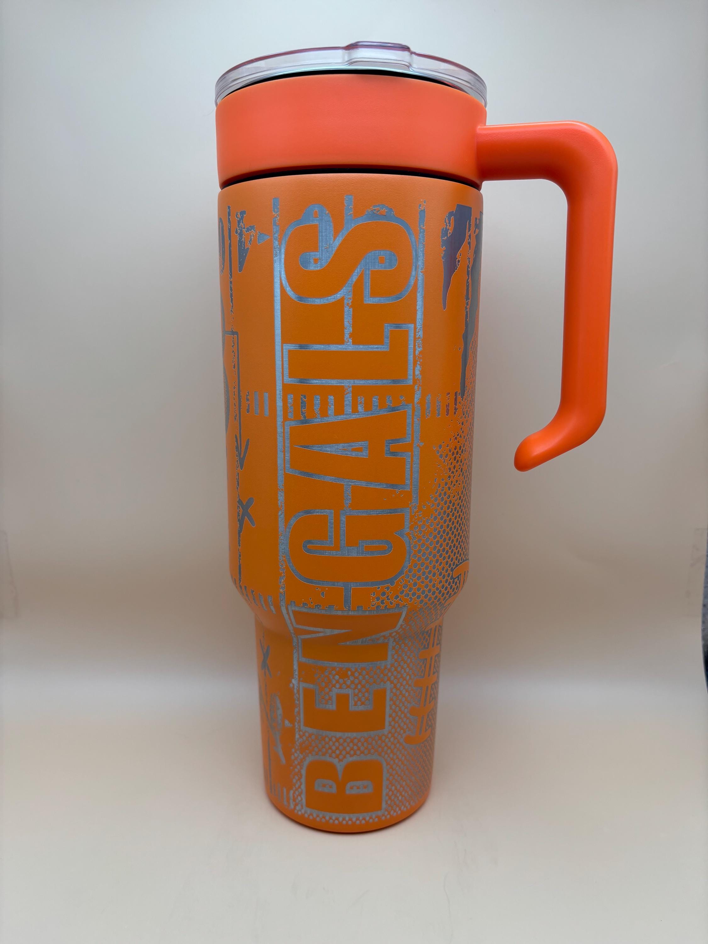 Check out our 40oz Bengals Laser Engraved Tumbler – the perfect companion for tailgates, game days, or repping Cincy pride every day!