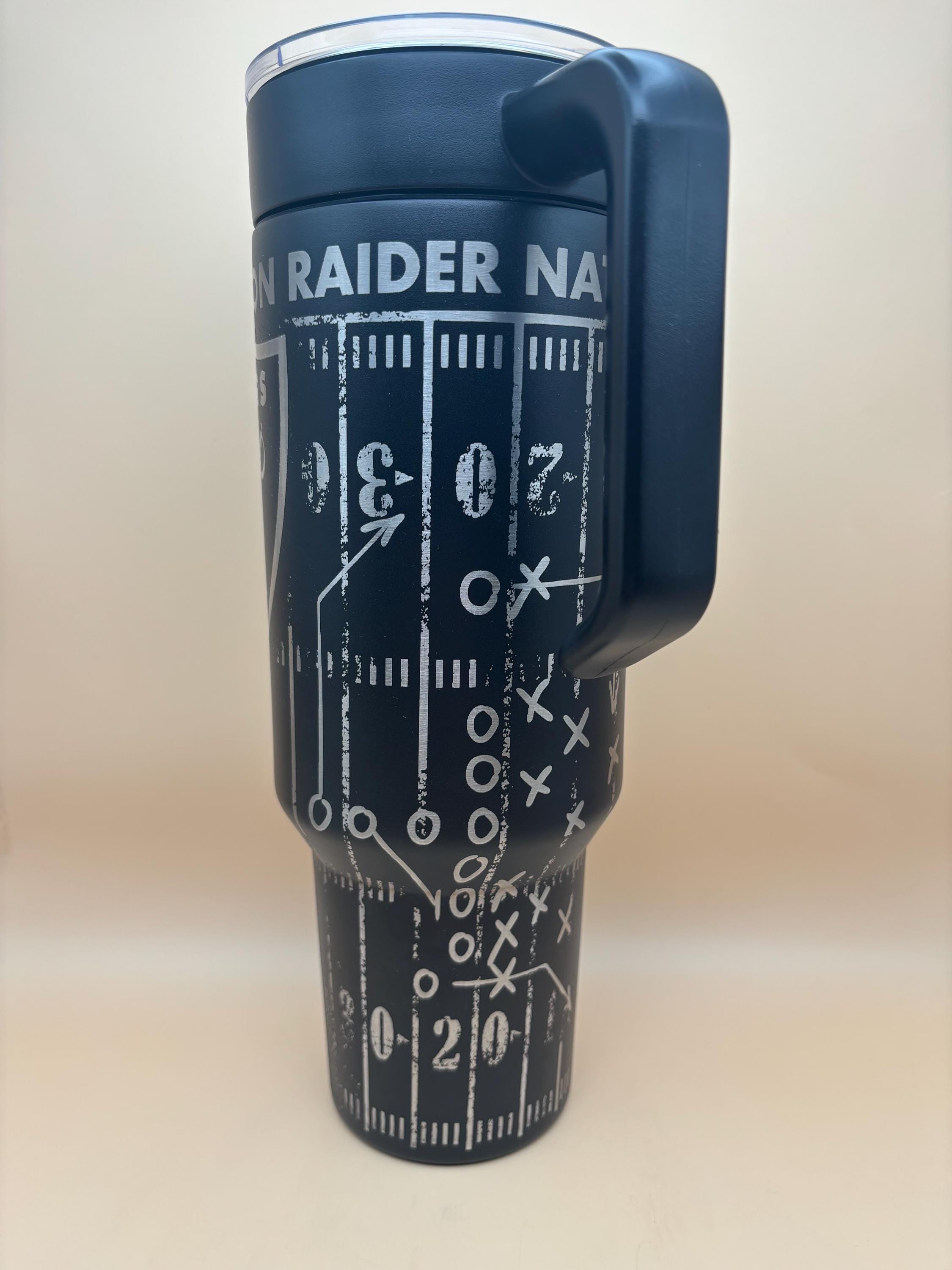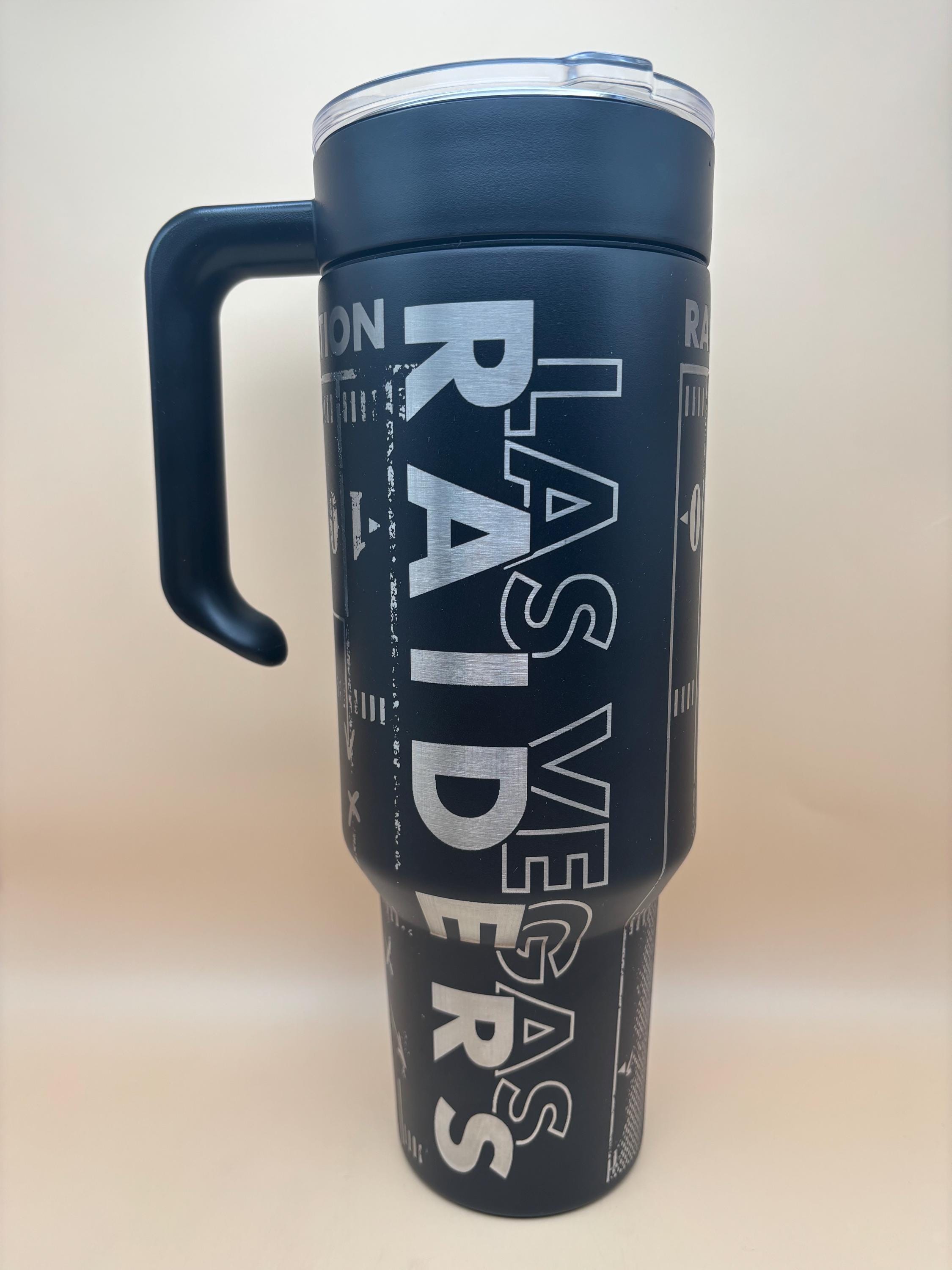 For the die-hard Raider Nation! This 40oz Raiders tumbler is laser engraved with bold detail — no peeling vinyl or fading prints. Built tough, just like your team.
