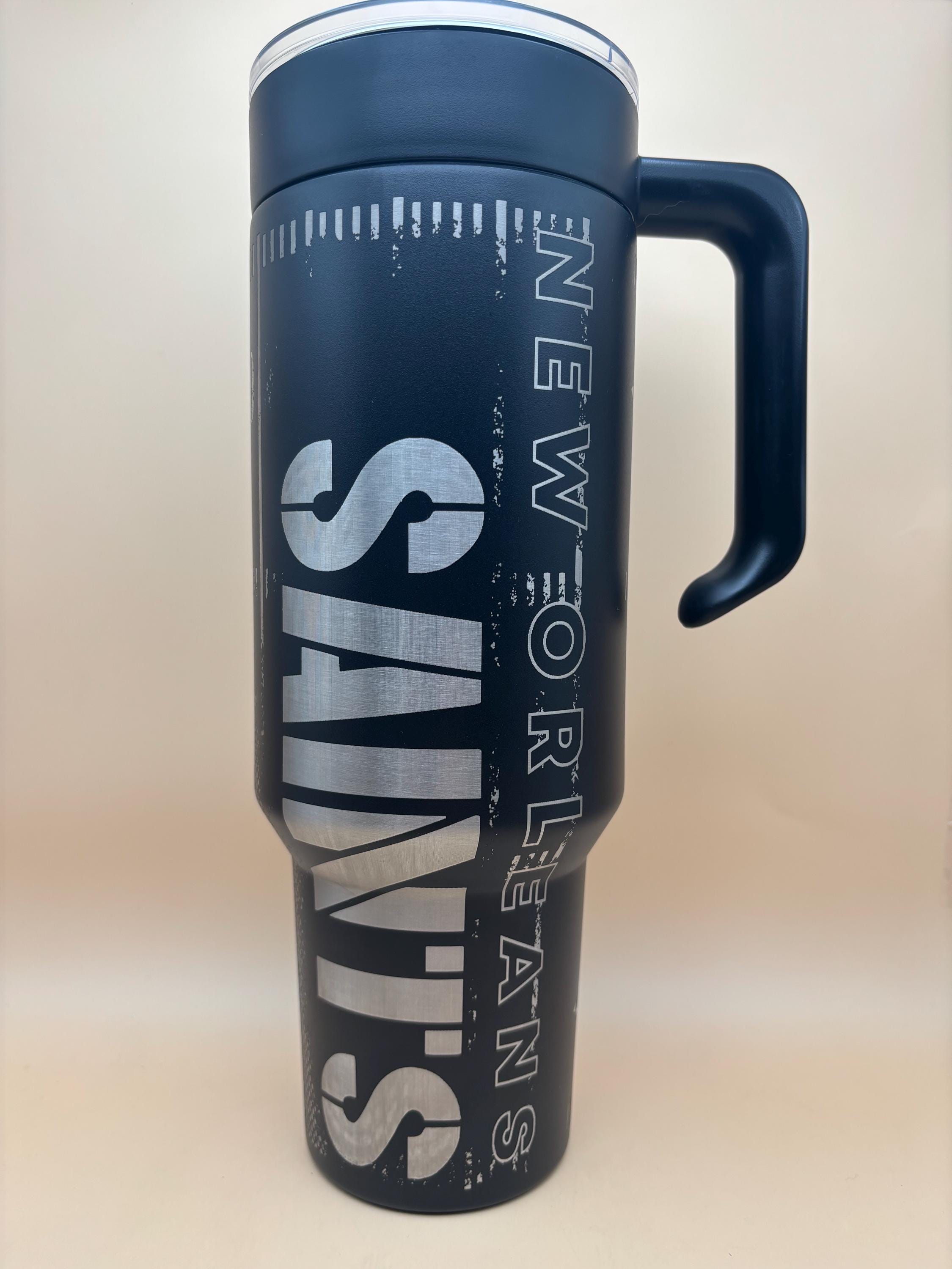 This 40oz laser-engraved Saints tumbler is perfect for keeping your drinks hot or cold while showing off your team pride. Featuring the iconic fleur-de-lis design, this tumbler is built tough for game days, tailgates, and everyday use.